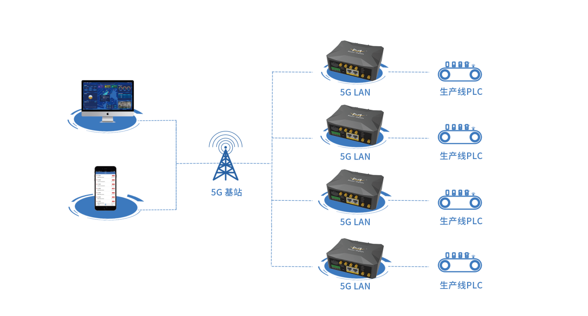 不仅如此,5GLAN技术具有即插即用、跨域组网、网络确定性等明显优势,在园区网络搭建、工业PLC等领域有着非常广阔的应用前景。加持了5G LAN技术的四信5G工业路由器不仅能节约工业互联网建网成本,还能降低产线5G改造以及工业互联网维护难度,实现灵活适配,从而大大提高生产效率。